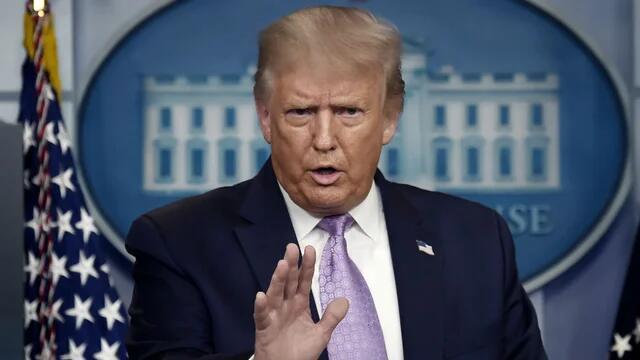 (特朗普5日出席白宫记者会。)