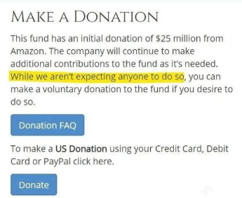 亚马逊为这个基金捐出了2500万美元,同时开放了公众捐助渠道。该基金网站明确写着“这个基金将主要依靠个人捐款以及亚马逊的资助”,公众捐助25美元起。