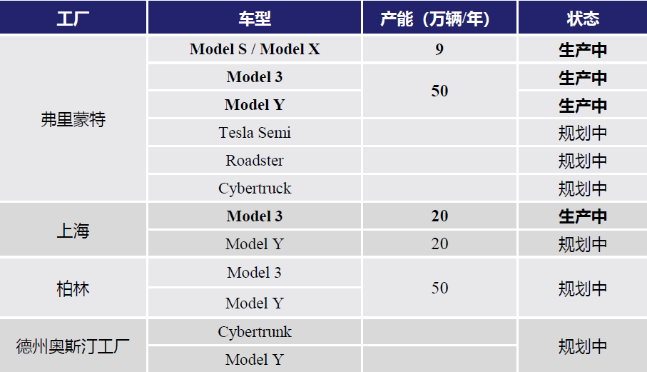 ●超级工厂。特斯拉的工厂设计的理念,首先是全自动,柔性自动化实在无法适配的技术区域再适用人力。这与主要是人力,用机器替代人力的一般工厂生产逻辑完全不同。