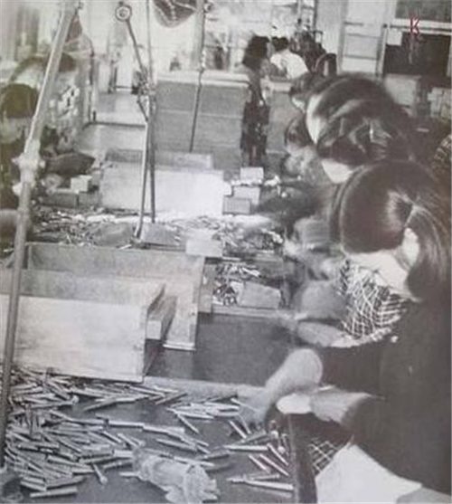 战争进入白热化阶段之后,日军已经渐露疲态,为了弥补人手不足的缺陷,日本男人源源不断地被征入军队,经过一个月的培训后就被投入战场,是死是活全凭天意。因此,由于日本劳动力十分短缺,所以苦活、累活只能让女人来干,无论是煤矿田地、还是军工厂,都有大量日本女工。可以看到,图中的日本女人正在车间制造子弹,天知道会有多少中国人因此而倒下。