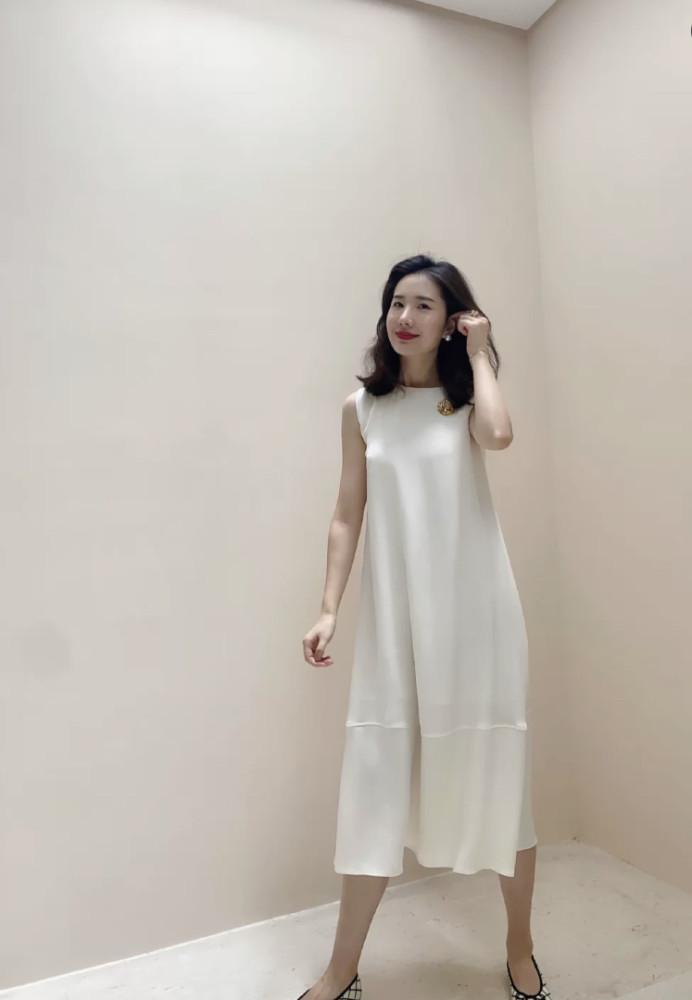 董花花身着某奢侈品真丝连衣裙,搭配同品牌金色胸针,透露出一股浓浓的高级感。她五官并不算出众,但气质超群,给人的感觉十分舒服,再配上这身装扮,简直是贵妇本妇了。
