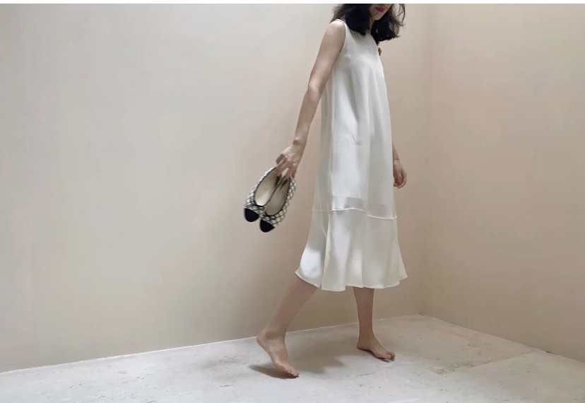 她将鞋拎在手中,似乎要翩翩起舞一样,举手投足间尽显女人味。