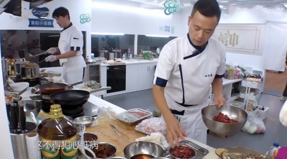 节目中,张亮与林述巍两位大厨总在后厨忙前忙后,一个接着一个的炒菜,汗如雨下没有时间休息。