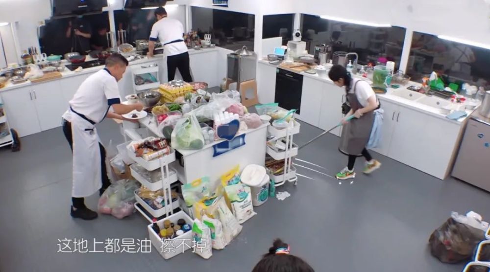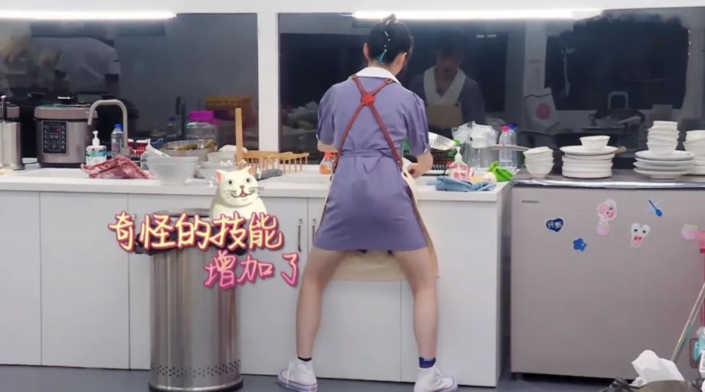 李浩菲变身刷碗小妹,几乎包揽后厨的打杂工作,镜头中的她就没有闲过。