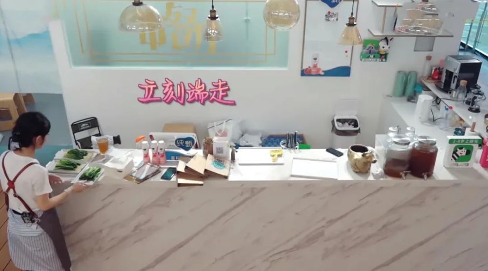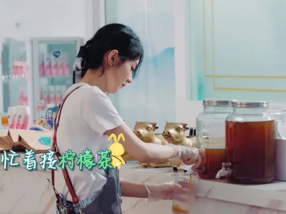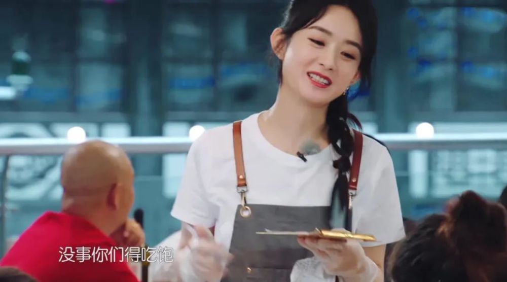 但实际上赵丽颖在忙着给客人端茶倒水,当她拿着托盘回到吧台后就立刻将菜端给客人。