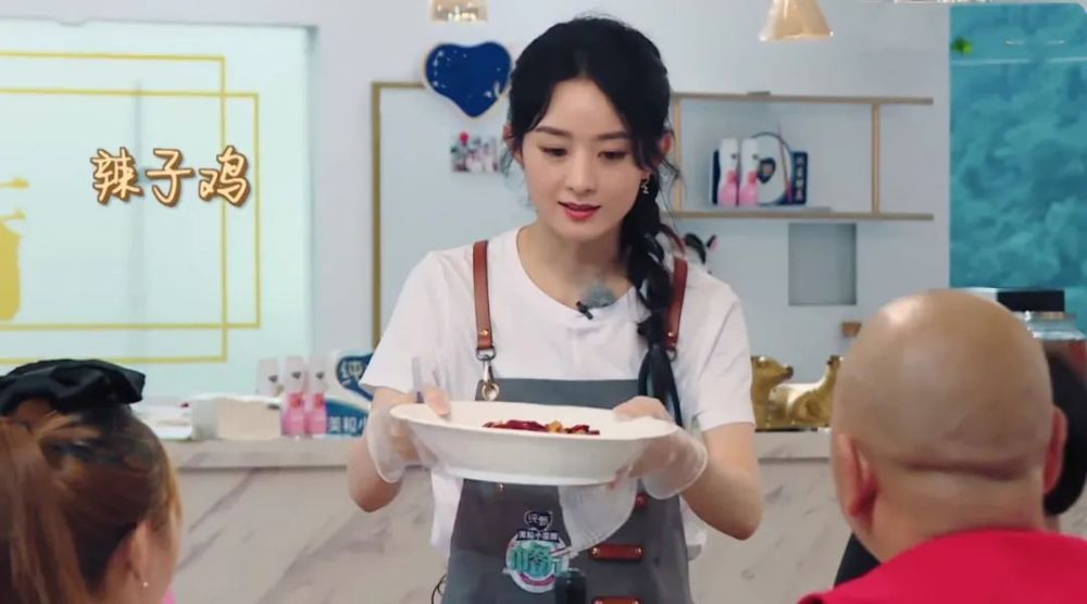 菜就在吧台上却没有人端上桌,其他人都忙忙碌碌,而唯独看不到赵丽颖的身影。