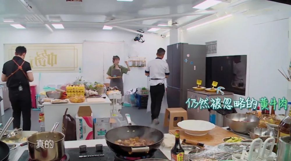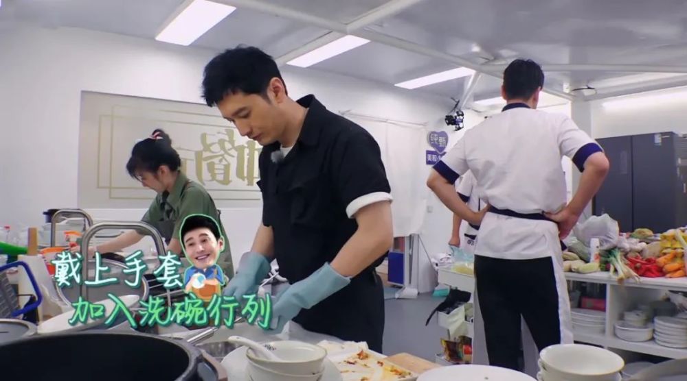 客人等待时间过长,菜早已做好却迟迟没有人端上桌,这时的镜头全给了两位忙于炒菜的大厨,还有忙着端菜招呼客人的李浩菲与黄晓明,却没有赵丽颖的身影。