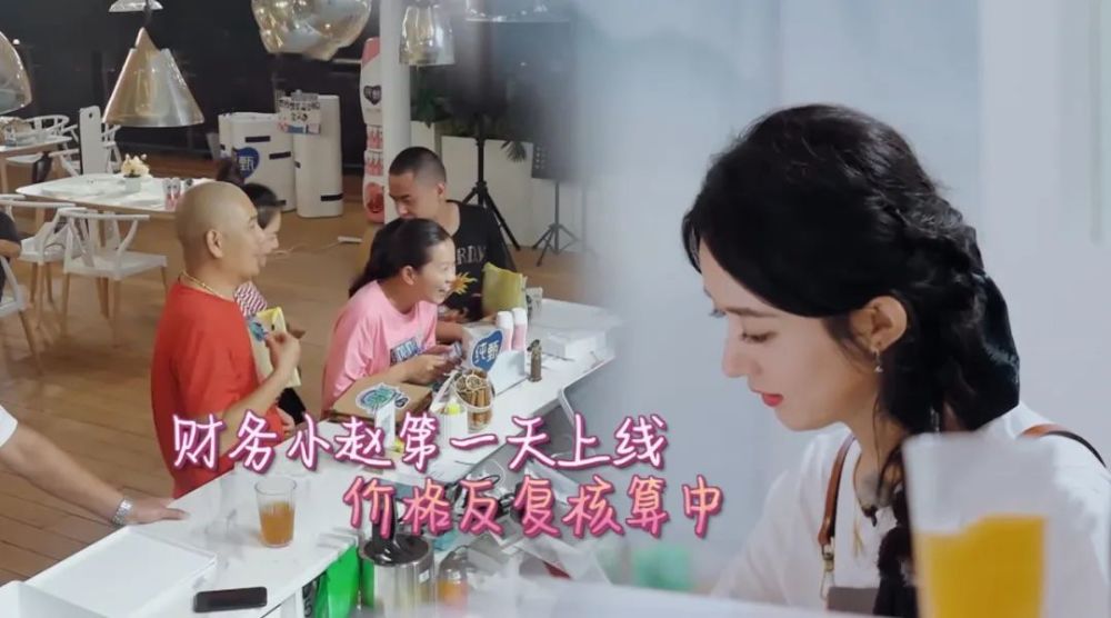 其实此时的赵丽颖正在吧台算营业额,一下也没有闲着,其他人是利用体力干活,而她利用脑力算账。