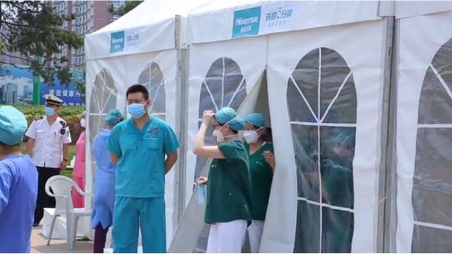 作为行业翘楚的海信新风空调的突破点是:让产品支持灭菌杀毒的功能。也正是这个功能的加入,6月份北京疫情反弹的时候、海信给临时监测点送去了一批具备海信最新的新风空调,它们不仅在高温天气下为临时监测点的医护人员带去清凉,还为临时监测点的医护人员创造了一个通风、富氧的检测环境。