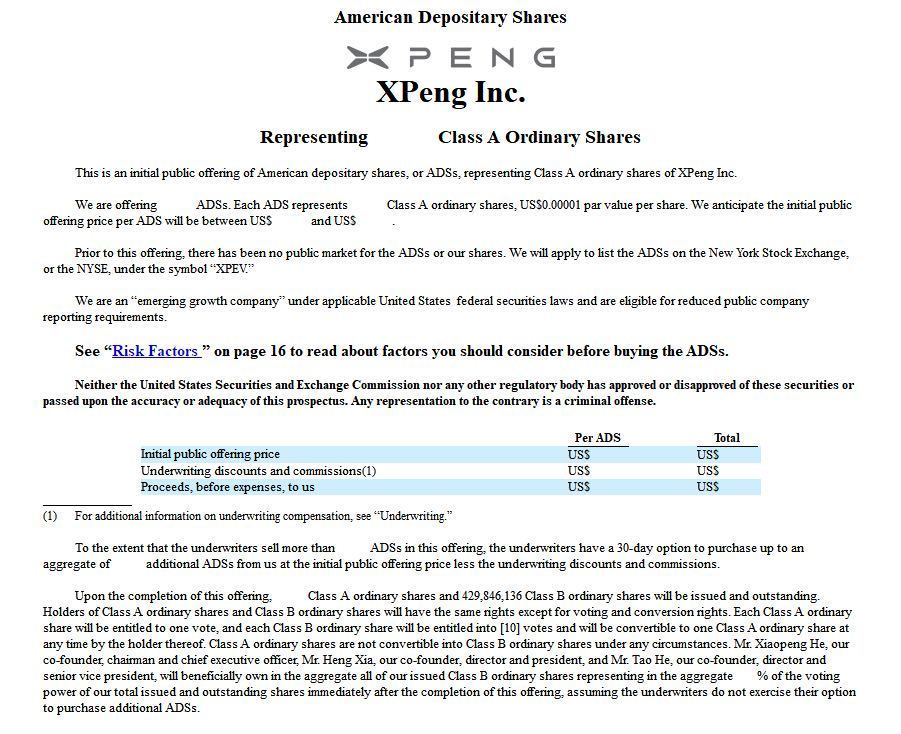 据了解,小鹏汽车此次IPO发行价区间和发行股份数未定,融资额暂时不确定,招股书所列1亿美元仅是例行披露的占位符,不代表本次IPO实际融资额。