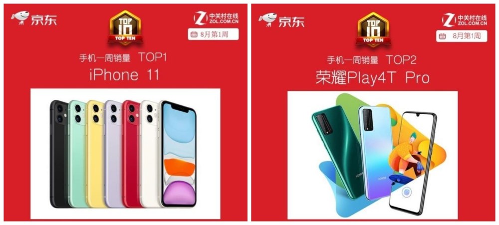 排名四到十位的分别是:Redmi K30 Pro、Redmi 8A、荣耀Play4T、荣耀9X、iPhone XR、Redmi K30i、Redmi K30。