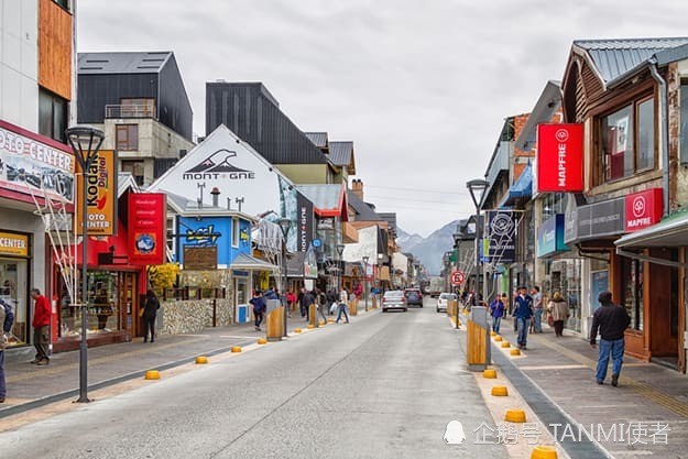 乌斯怀亚街道两边既有现代化的建筑,也有一些铁皮做的简易房子,还有一些是几十年修建的木头房,这种房子最多就两层。而主要的大街是圣马丁大街,这条商业街的繁荣程度一点不比外面城市的商业街差。因为这里是通往南极的门户,所以游客比较多。