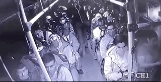 一段墨西哥公交车上的监控视频还原了震撼一幕:两名持枪劫匪正叫嚣让人们交出财物,乘客中一名休班警察挺身而出向劫匪开枪反被射杀,愤怒的乘客们随后一拥而上拦住劫匪并将其打死。