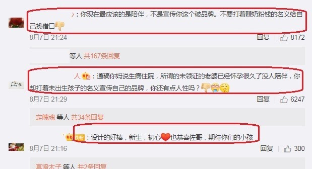 首先就是在向佐发出品牌的宣传之后,绝大多数的网友们是这样子说的“你现在最应该给她的是陪伴,不是宣传你这个破品牌,有意思吗?不要打着赚奶粉钱的名义给自己找借口!”
