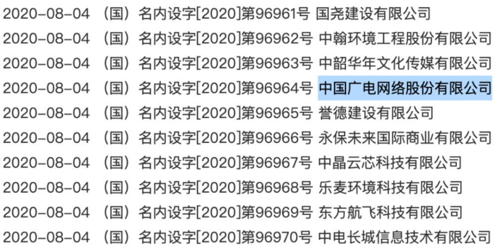 国家市场监督管理总局8月4日公开的一则“企业名称申报登记公告”显示,中国广电网络股份有限公司已经向国家市场监督管理总局申报登记,编号为“(国)名内设字[2020]第96964号”。一般来说,申报登记通过之后,数个工作日就可以完成注册。有消息称,12月30日所有发起人完成资产注入工作。