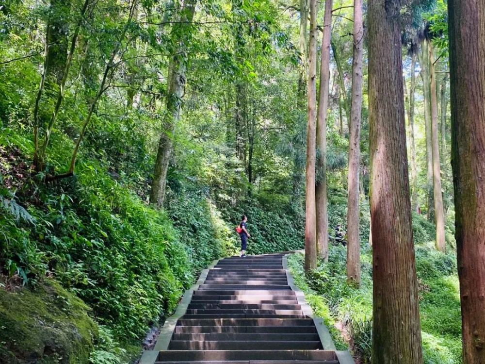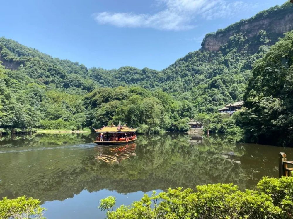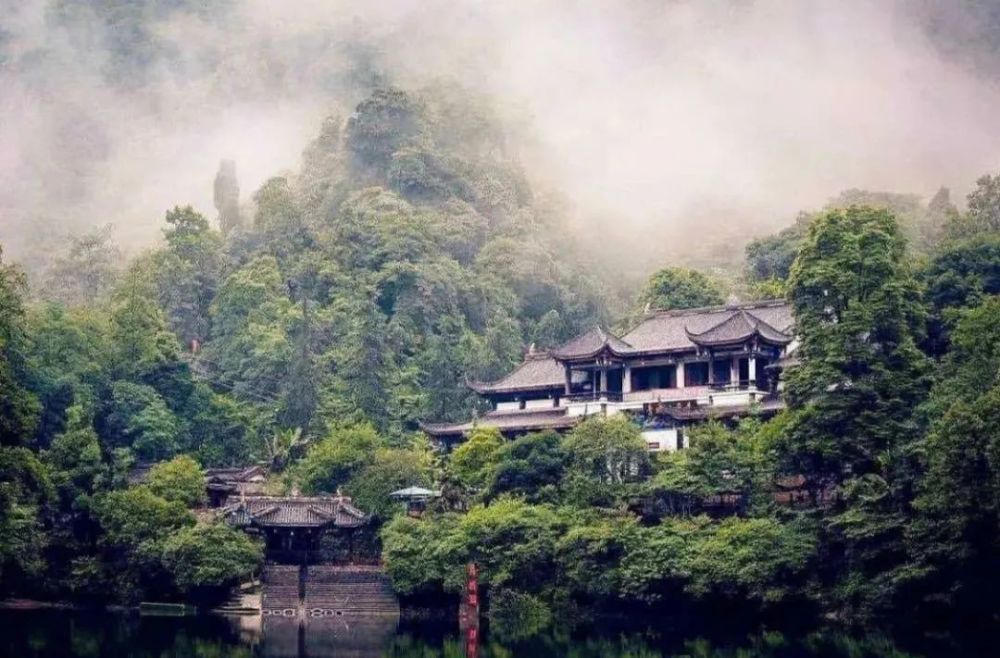 步行一小会儿,月城湖即映入眼帘,这里是登青城前山必经水域,你可以做船摆渡到对岸也可以步行10分钟左右,从对岸上山。上山后可见始建于隋朝的古常道观,而如果你一直走到尽头就是著名的上清宫了,这里的道观建筑群是晋朝建造的,宫门“上清宫”三字由蒋介石题寅。