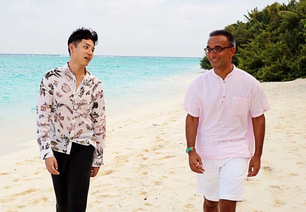 几年前我第一次去Soneva的时候就有点惊讶,下船上岛后,接我的管家拿了个布袋说:“孙先生,脱鞋吧”,后来才发现,Soneva真的在彻底贯彻“No News, No Shoes”(没新闻,不穿鞋)的理念。于是,赤着脚,我和Sonu在他的第一座酒店岛上边走边看落日,边聊起他的许多理念。