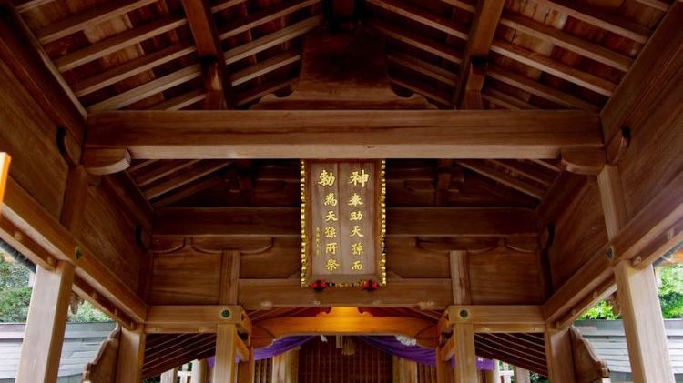 “天孙降临”之后,天照大神命令宗像三女神降临到此扼海上要道之地,守护代替天照大神统治日本的“天孙”琼琼杵尊,并接受天孙的血脉,也就是历代天皇的祭祀
