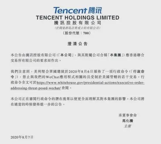 对此,腾讯发布公告,表示正在审阅行政命令的潜在后果,以便更全面理解其对腾讯的影响。