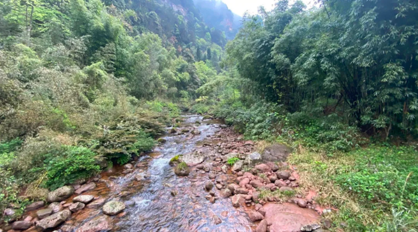 天竺沟为佛宝原始森林内沟谷型景观的代表,绿林红谷的特征是川南红谷河滩与原始绿林结合的典范。