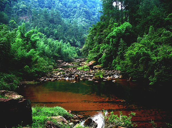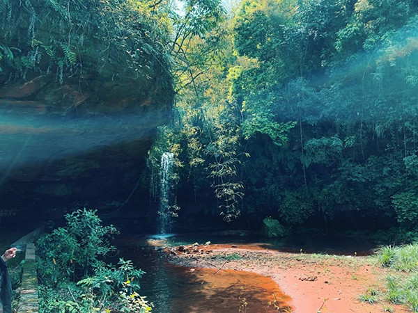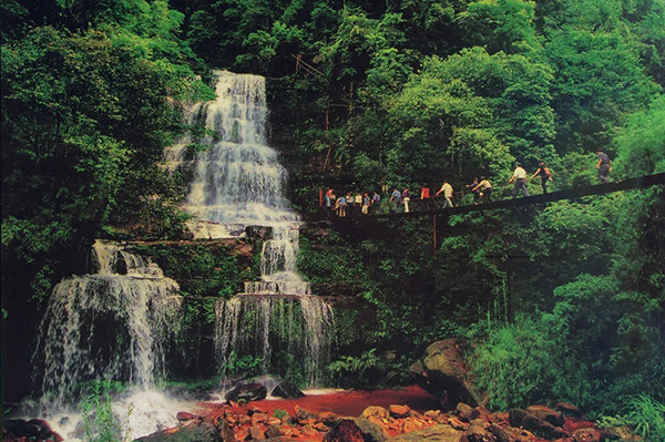 巍巍险峻的红岩砂石和溢红流绿的郁郁山峦间,云带缭绕,婉转婀娜,磅磅礴礴的林海。过红岩飞瀑,爬绝壁栈道,只觉铺天盖地的绿色向人涌压过来;林鸟飞起飞落,溪水潺潺欢快,原始古朴的风。一路岩石基本都是红色的,显得格外不同,周边生态环境良好适宜发展休闲度假、探险、研学等旅游项目。