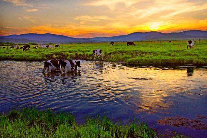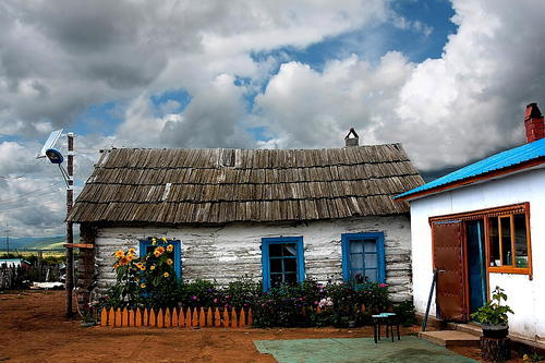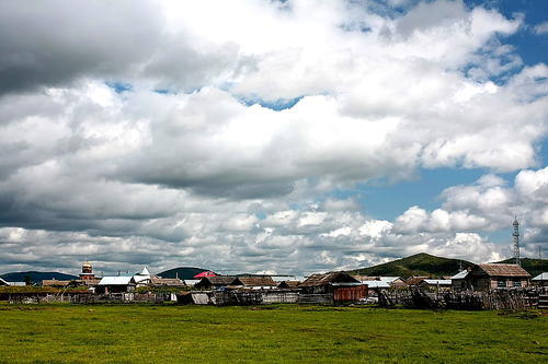 这里的村民会很用心的装饰他们居住的房屋会在房屋的空地上扎一个秋干,会在木栅栏里的种植蔬菜或是格桑花给老式的玻璃窗边框刷点颜色,再在窗台上摆一个个的小盆栽。在村子周边有一条小河流过,几个小小的水泡子散落在草地上,当黄昏日落的时候,河水被照得发亮,村庄也浮现一层暖暖的橙黄色。