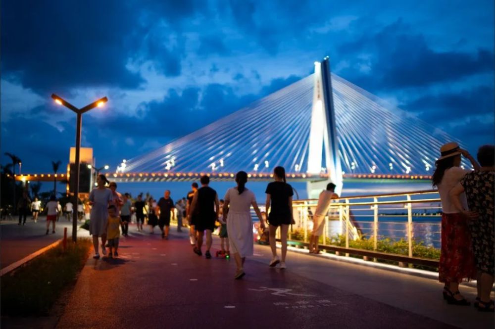 华灯初上,是海口湾热闹的时间了。吃完晚饭后,在这里散散步,岸上灯火璀璨,岸下流光溢彩,如此美好的夜晚,一定能带给你一场好梦。
