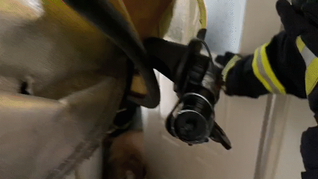 消防员随即出水稀释