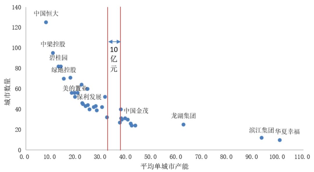 图:千亿房企破千亿当年城市数量和单城市产能