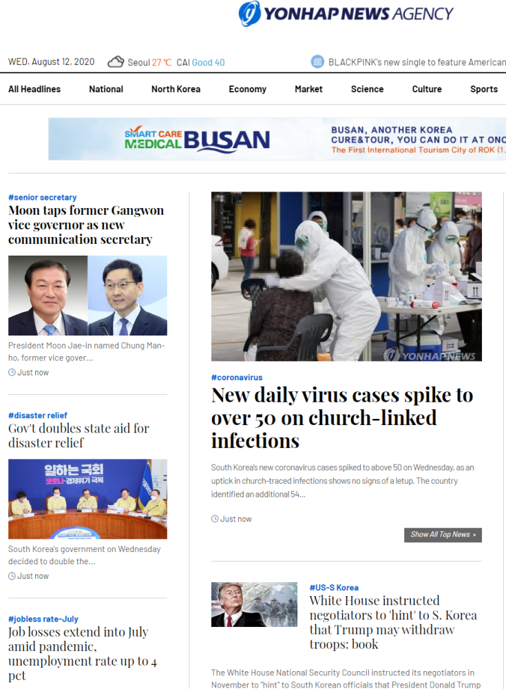 韩联社:与教堂有关感染,新增病例激增至50余例