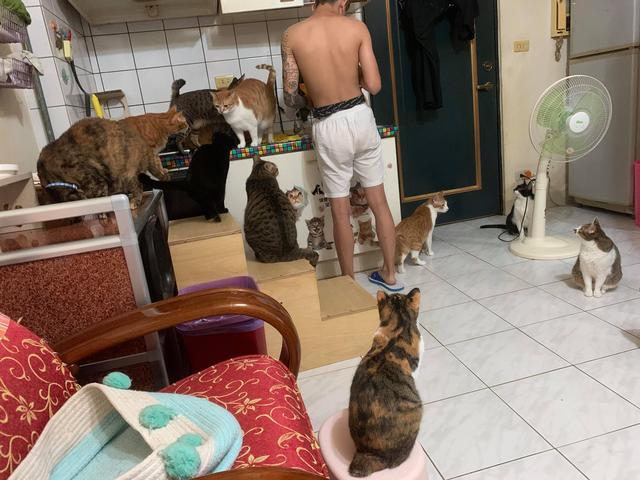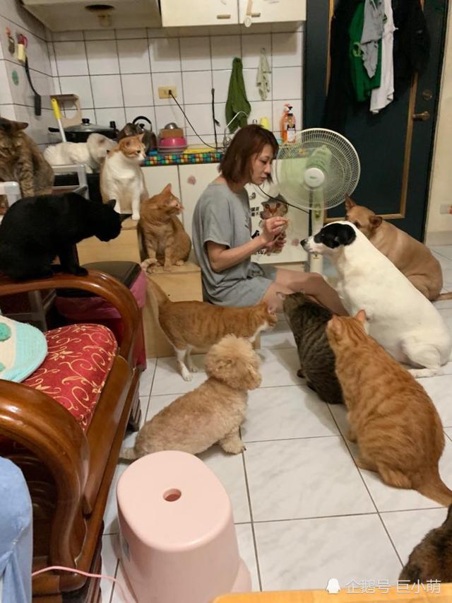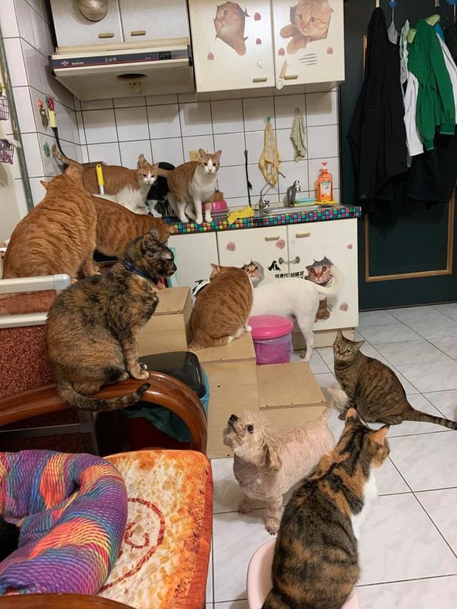 原来,这位网友本身就是非常喜欢小动物的,它家里养了3只狗和14只猫(哇,这个数字相当可观,能与郭碧婷一较高下了),而主人也对这些小家伙十分宠爱,每次给的食物都很美味,也让这些小家伙对吃的东西非常期待,所以每一次准备给猫狗喂食的时候,场面都非常震撼。
