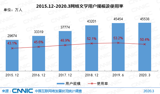尽管阅文集团在2020年上半年营业收入录得了同比增长,但9.7%的同比增速相比较去年同期增速下降明显(去年同期增速30.1%)。