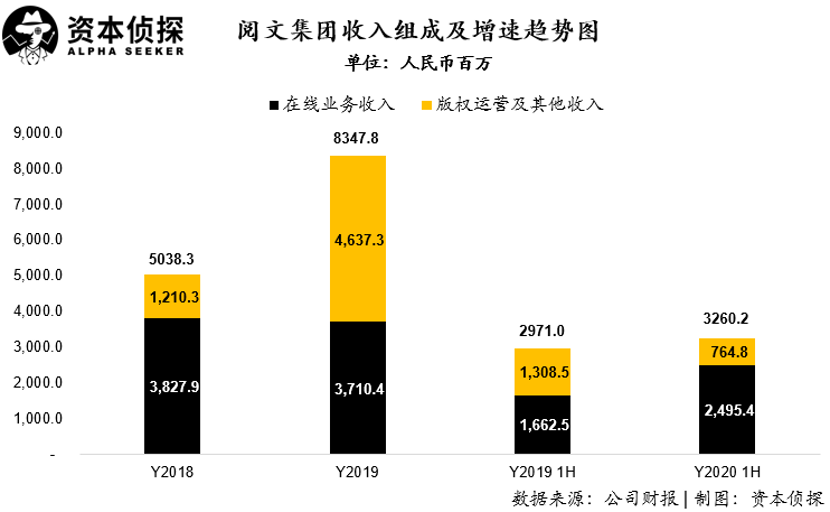 财报显示,阅文集团2020上半年实现总收入32.6亿元,同比增长9.7%;毛利润为17.3亿元,同比增长6.8%。业务方面,在线业务收入同比增长50.1%至24.95亿元,版权运营及其他收入同比下降41.5%至人民币7.6亿。新丽传媒2020上半年收入及经营业绩未达预期,受此影响,叠加其录得商誉及商标权减值拨备人民币44.1亿元,阅文集团净亏33.1亿元。