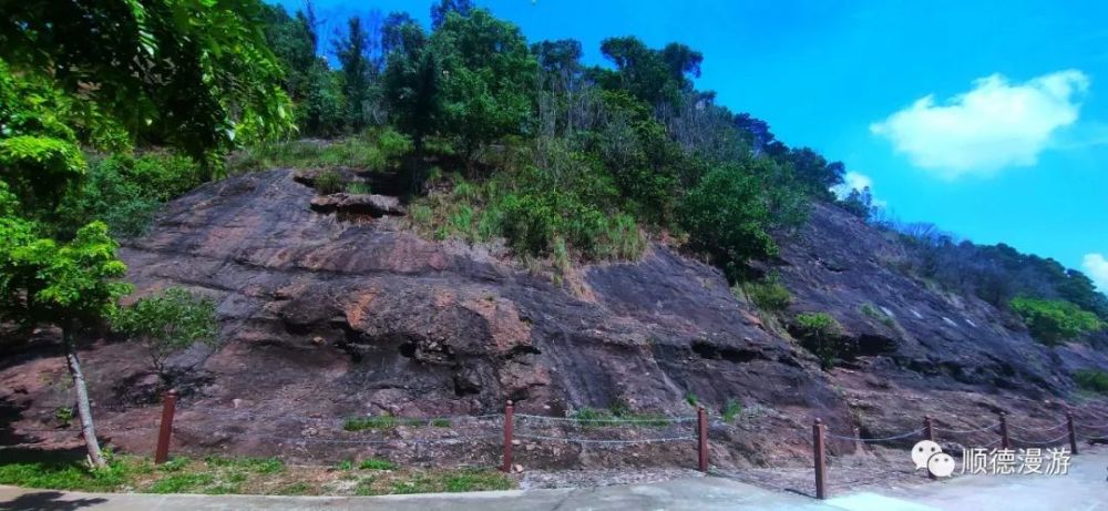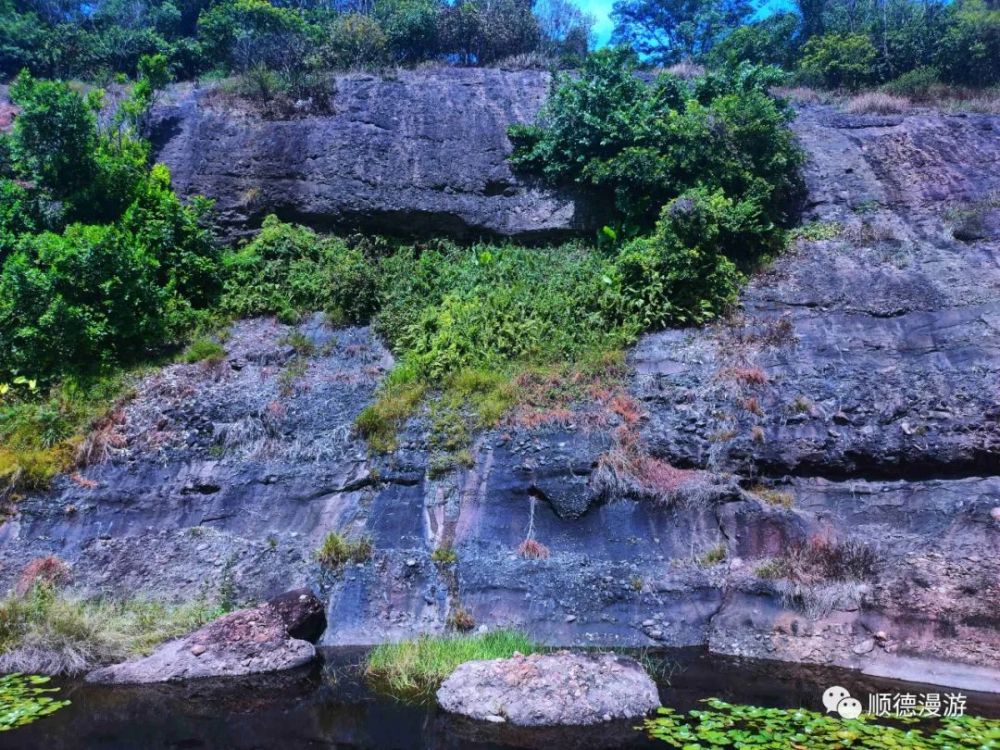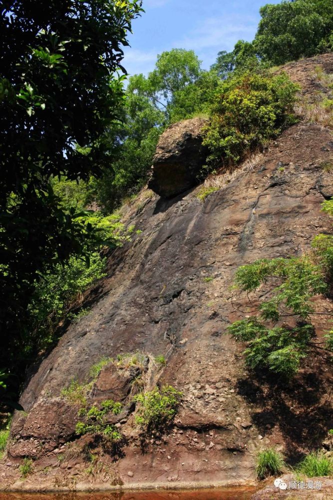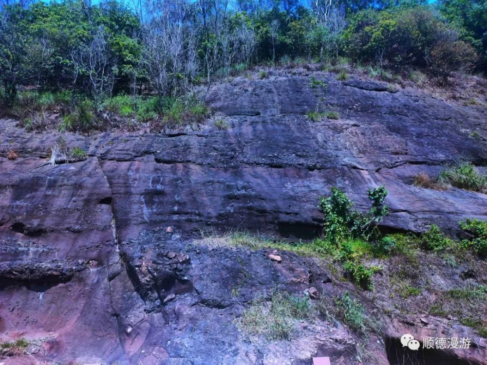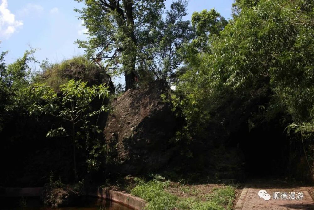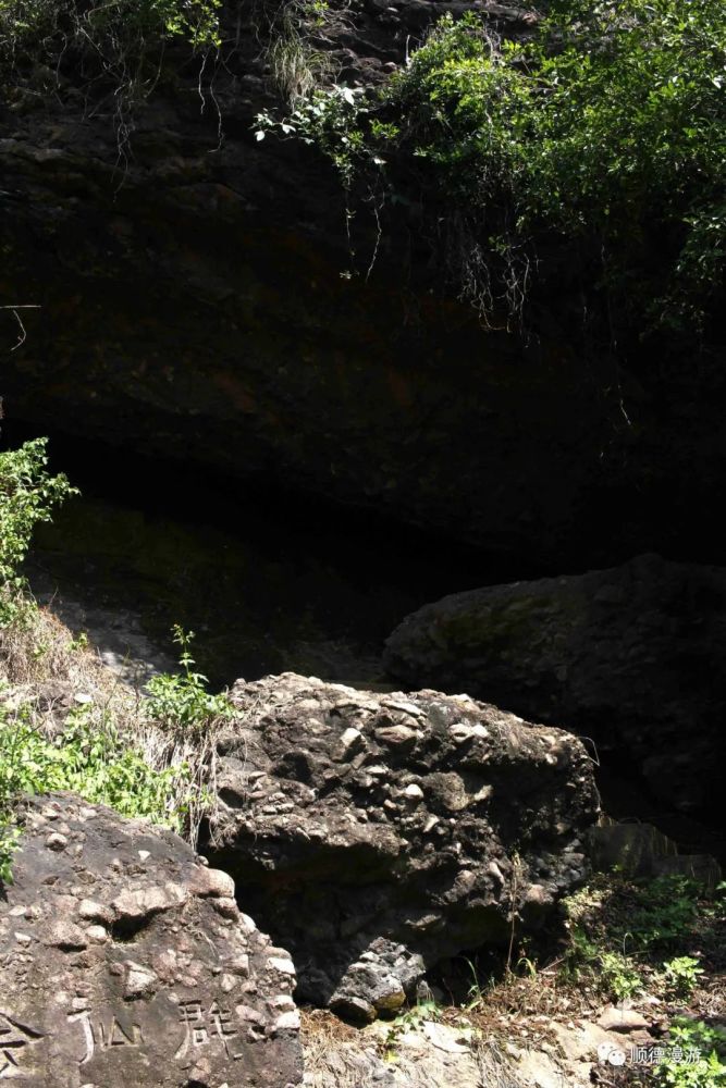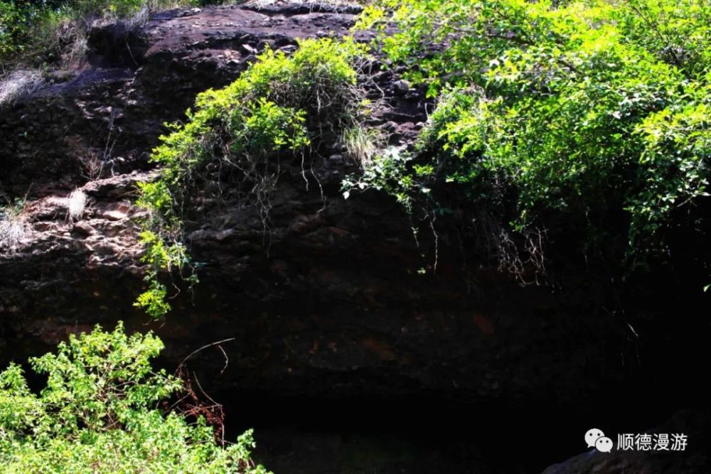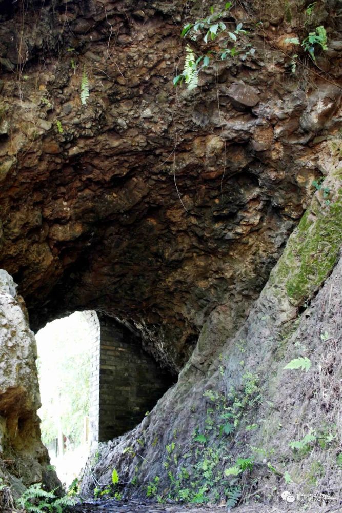 滴水崖 过去这里山上树木植被繁茂,终年岩水滴滴,流水潺潺。即使是隆冬十二月,仍可看见丝线似的细流,又像一串串晶莹剔透的小珍珠,垂帘于“悬崖绝壁”的;如遇上滂沱大雨,躲进滴水岩避雨,还可见到水帘洞似的壮丽的景观。后由于“滴水崖”水脉被破坏,以使“滴水岩”在干旱时没有水滴出来,只在春夏雨季才看见滴水。