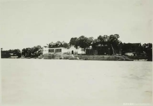 这是蟂矶之上的灵泽庙,又称为蛟矶娘娘庙,传说这里供奉着三国时期刘备之妻孙尚香,门前有两座石狮子守护,门楼上雕有“江心第一境”字样。可惜在抗战期间被烧毁。