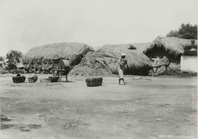 芜湖郊外的农家,土墙茅屋,院内平地,一位农民正在田里劳作。芜湖是“四大米市”之首,盛产稻米,那时候的稻米都是靠农民们这样辛苦劳作才能收获的。