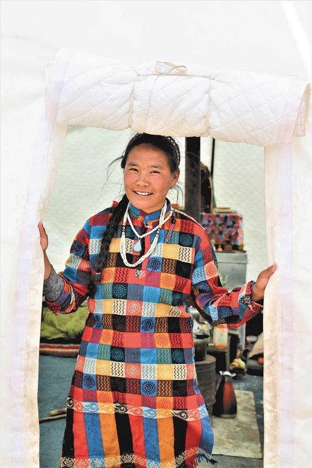 在噶尔县扎西岗乡鲁玛村,牧民扎西央措在帐篷口热情送别远方来的客人。
