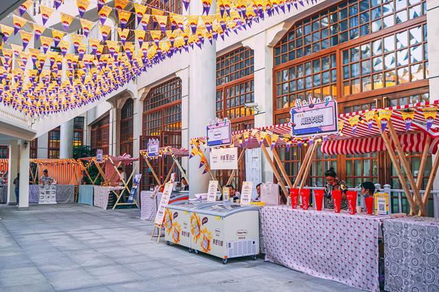 回到1楼,出门便是大世界的室外部分,在非遗亲子节期间,除了大舞台上会有各种杂技演出外,还有今年最流行的市集,里面有各种好吃好玩的,冰激凌、网红大可乐、文创好物等等,