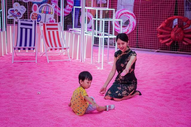 粉色沙滩 ,虽然躲在室外的最角落,但也掩盖不住这暖暖的夏日风情,海岛椰林环绕,坐拥一整片粉色沙滩,沙滩椅和阳光,还有网红火烈鸟、彩虹圈,超级适合拍照~小孩子们坐在沙堆里,就再也不肯起来了~ 晚上亮起灯,更是融化满满的粉色少女心~