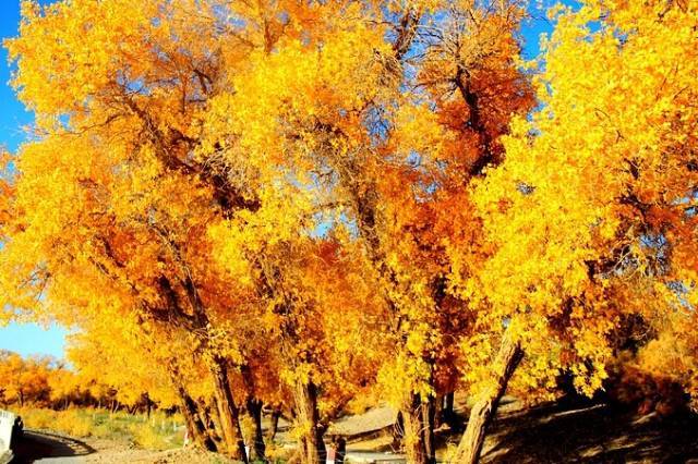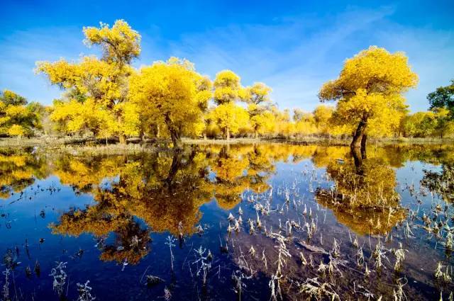 积蓄了整整一年时间,这里的美景有着惊人的爆发力。就连沙漠、湖泊都被染成了金色,国内再也找不到如此纯粹的金色。
