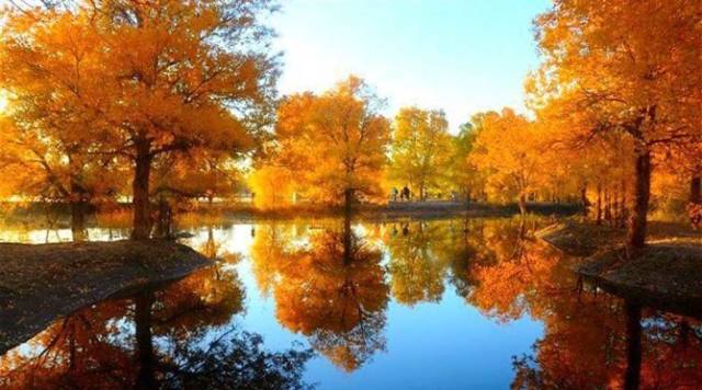 这是被称为中国最奇妙的勾魂秋色、曾因张艺谋的《英雄》中张曼玉和章子怡一场树林决战而名扬天下,如今又吸引无数人从全国各地慕名而来的额济纳胡杨林。