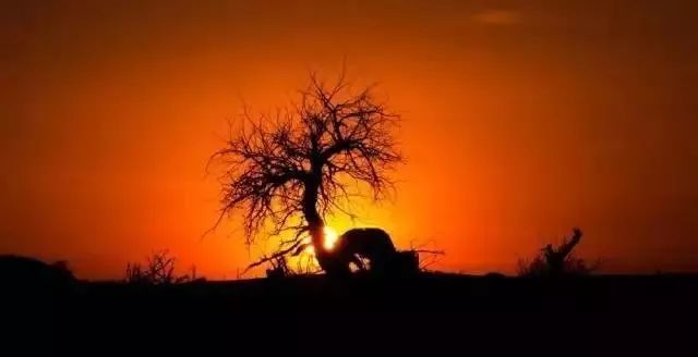 大漠、戈壁、落日、胡杨