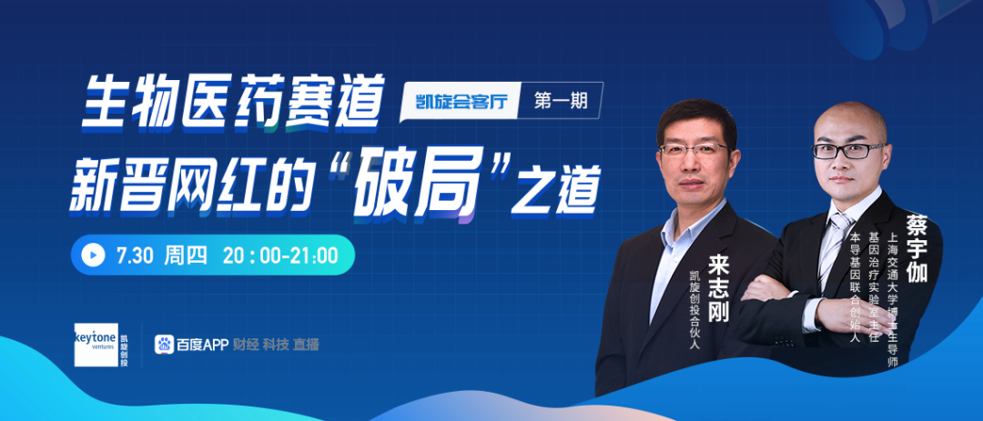 第一场邀请到了本导基因联合创始人兼首席科学家,上海交大系统生物医学研究院研究员、博士生导师、基因治疗实验室主任蔡宇伽蔡教授,与凯旋创投合伙人来志刚进行了一场关于《生物医药赛道,新晋网红的“破局”之道》的直播。以下为直播精彩回顾。