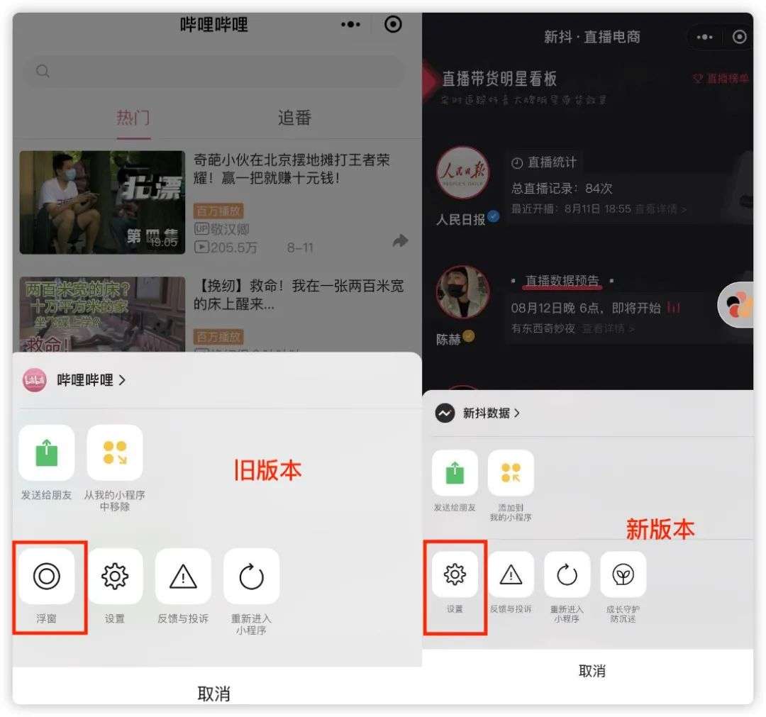 除了视频号的变化之外,这次改版最令人惊讶的莫过于小程序“浮窗”功能的下线。