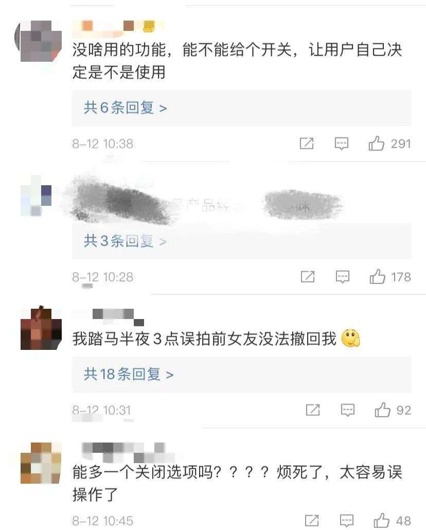“误拍”是被吐槽最多的一个点,很多人都在无意中不小心就“拍了拍”谁,有些甚至是一些颇尴尬的对象,比如领导、前男/女朋友,也因此,相对于气泡提醒,更多人想要的是一个自己掌控开关“拍一拍”的按钮。