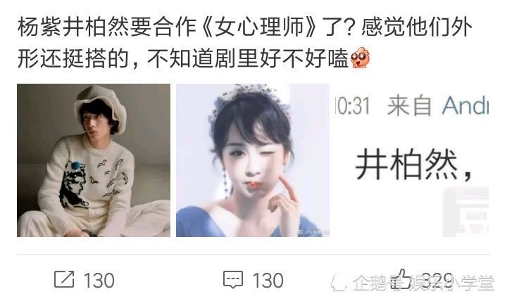 除此之外,据悉《女心理师》的男主角邀请井柏然出演,也是一位人气非常高的当红小生。井柏然近些年主要的实绩在电影方面,主演的《捉妖记》《捉妖记2》《后来的我们》都获得了超高的票房,演技也备受大众认可。据悉井柏然目前推了《张公案》,就是为了出演这部剧留出档期。