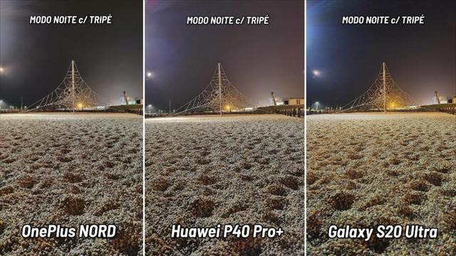 在这组夜景拍照对比中,三星S20Ultra拍摄的照片中沙子的颜色是偏黄色的,而华为P40Pro+拍摄的沙子颜色是偏灰色的,另外一加Nord拍摄的照片中沙子的颜色则是介于华为P40Pro+和三星S20Ultra之间。