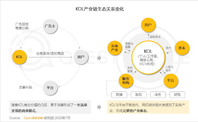 向右走,电商带货:微博、微信等成长起来的电商模特或大V,走向流量渠道。