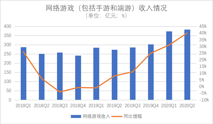 其中,网游(包括手游和端游)收入382.88亿元,同比增长40%,环比增长3%;手游收入359.88亿元,环比增长4%;端游收入109.12亿元,环比下降7%,财报称,该项增长主要由国内及海外市场手游收入增加所推动(包括《和平精英》和《王者荣耀》),部分被端游收入减少所抵消(包括《地下城与勇士》和《穿越火线》)。