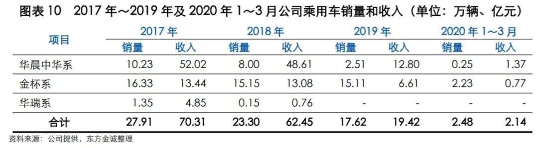 但不论华晨系、金杯系还是华瑞系,近两年来销量都急剧下滑。其中华晨中华系2017年至2019年的销量分别为10.23万辆、8万辆、2.51万辆,销售收入也从2017年的52.02亿元降至2019年的12.80万元。